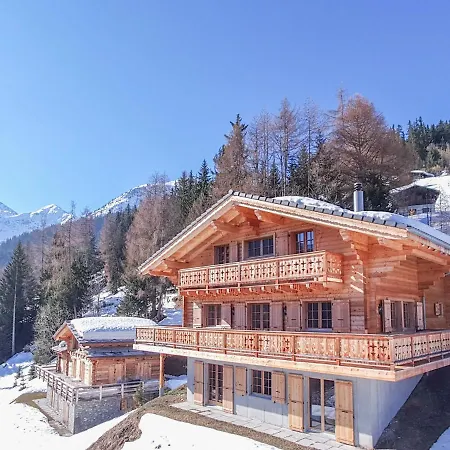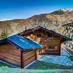 Die 3-Zimmer- Chalet Le Chapeau verfügt über eine Terrasse mit Blick auf die Berge und ist 30 Autominuten vom Flughafen Sitten entfernt gelegen.